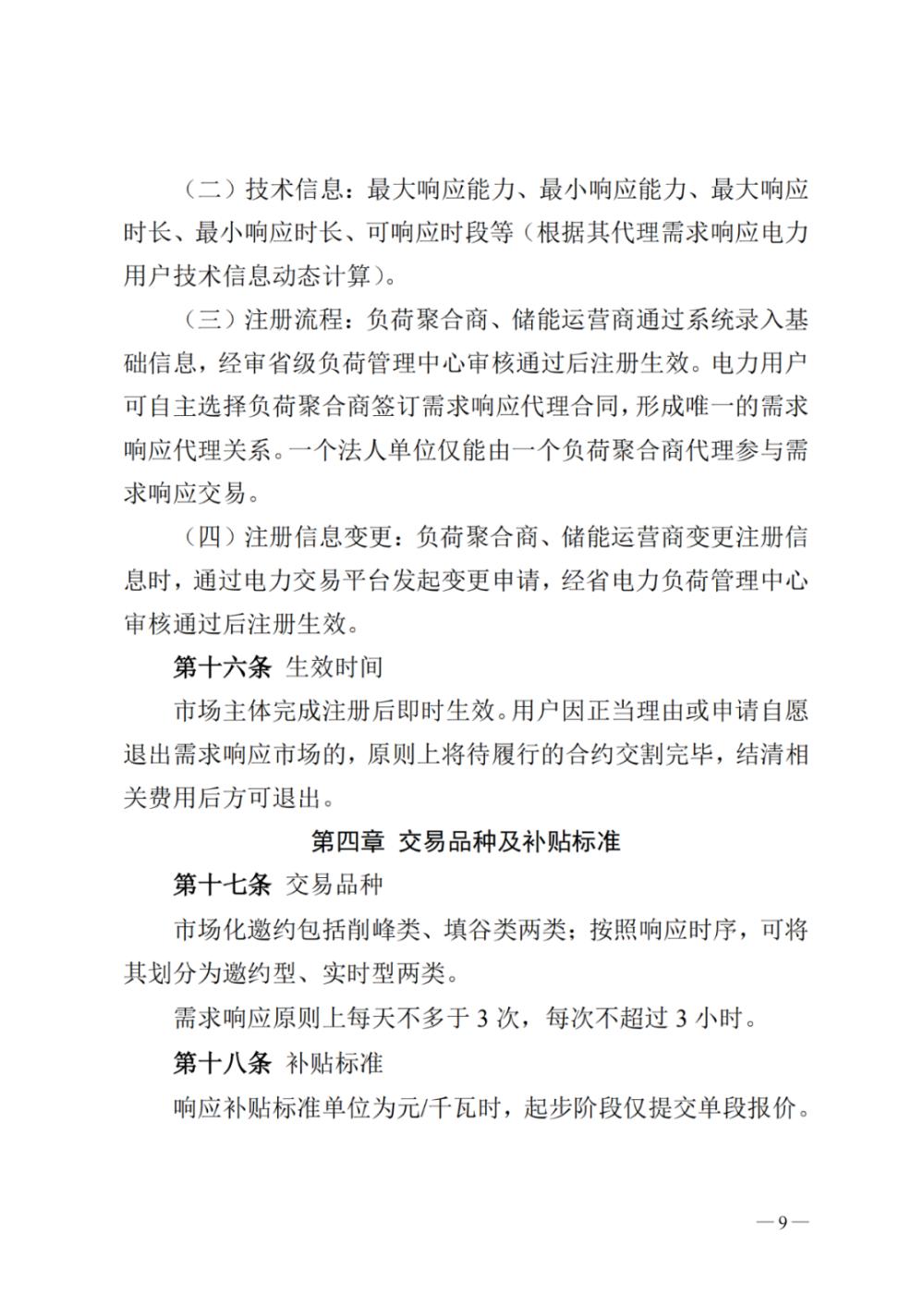 實時型響應補貼:實時響應補貼標準執(zhí)行全年統(tǒng)一價格2.5元/千瓦時。邀約型響應補貼:削峰類響應補貼標準的上下限分別為5元/千瓦時、0元/千瓦時;填谷類響應補貼標準的上下限起步階段分別暫定為1元/千瓦時、0元/千瓦時。