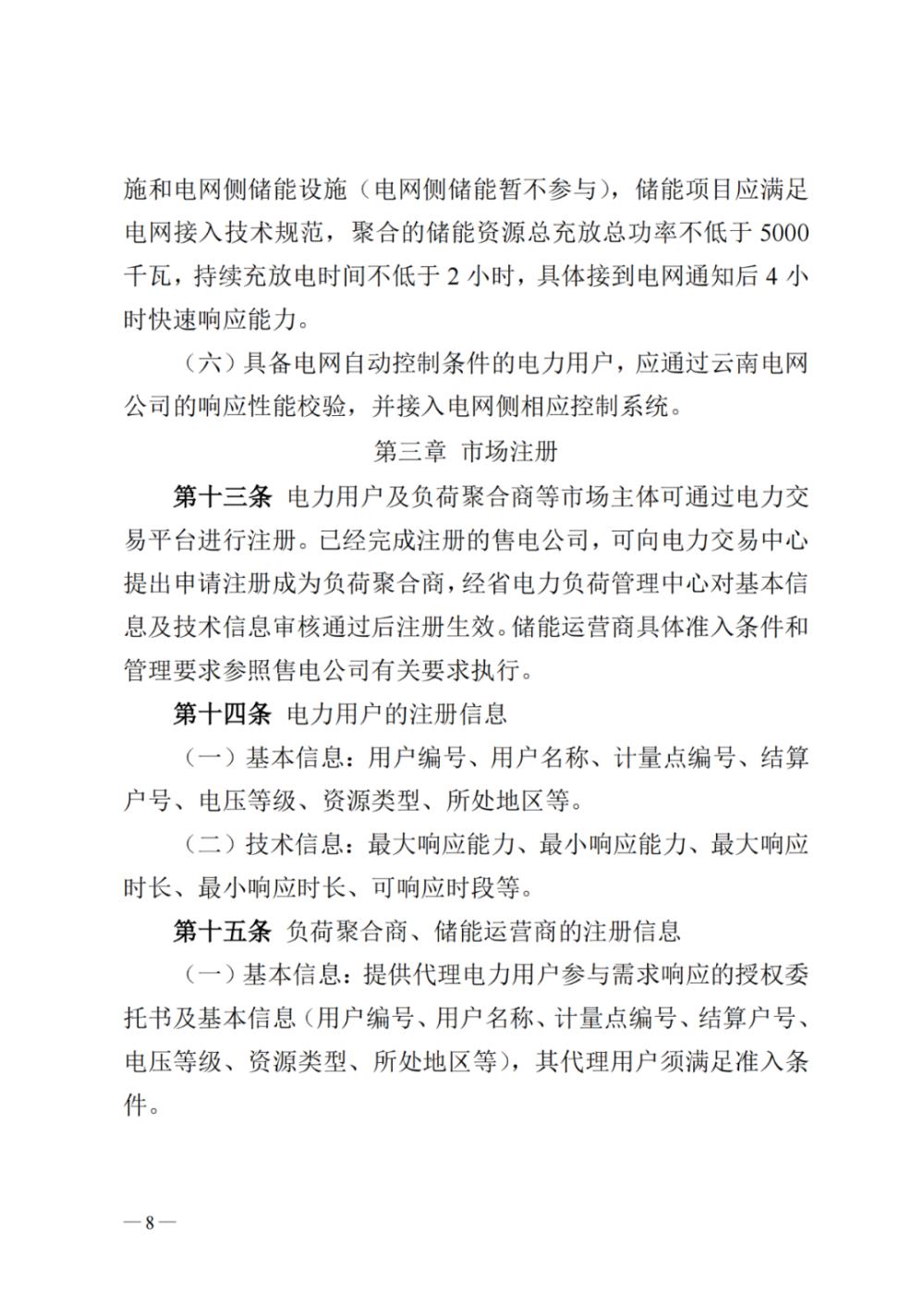 在準入條件中提到,儲能運營商可代理多個儲能項目,包括用戶側儲能設施和電網(wǎng)側儲能設施(電網(wǎng)側儲能暫不參與),儲能項目應滿足電網(wǎng)接入技術規(guī)范,聚合的儲能資源總充放總功率不低于5000千瓦,持續(xù)充放電時間不低于2小時,具體接到電網(wǎng)通知后4小時快速響應能力。